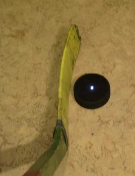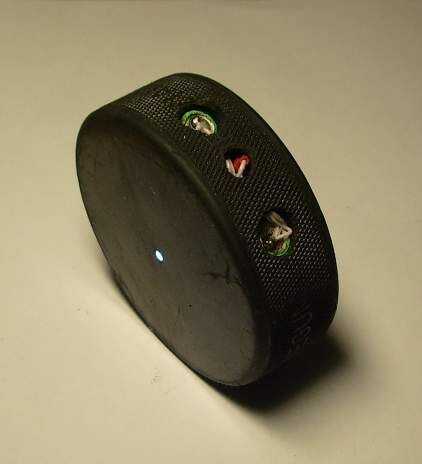 Duende malicioso del hockey sobre hielo con luces LED permite para continuar a jugar al hockey después de que se ha convertido en oscuro.