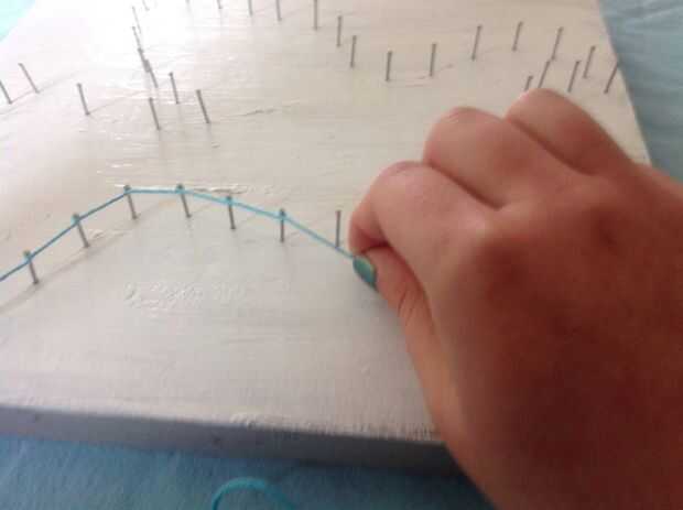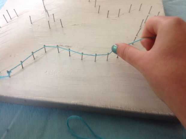 Je de rand de nu ga van de duif maken en dit doe je puerta telkens conocidos de draad rond de descarga spijker te gaan. DIT herhaal je tot je weer aan de eerste spijker interfaz.