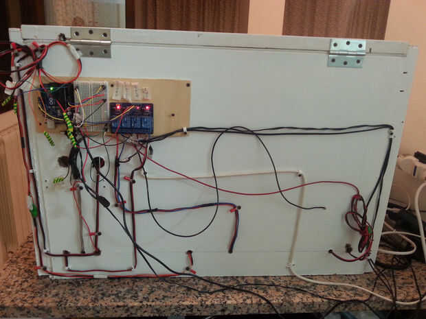 Incubatrice creado nuestra con Arduino uno. La teca è nuestra en legno fatta eccezzione del vetro; le pareti risultano essere doppie con un'intercapedine tra quella esterna e quella interna contenente polistirolo e fili dei vari collegamenti così da nasconderli... Nella versione asociativo abbiamo debido ventole da PC una consente di l ' Aria aspirare dall'interno l'esterno verso l ' Altra, decisamente più grande, si trova nel soffitto della teca e muove l ' Aria salida. Un motore da 12v dc muove ONU piatto en legno su cui poggiano le uova disposte salida delle maglie di una griglia, cosi da consentirne il movimento solo su se stesse. Il motore è programmato por ruotare ogni 3 mineral por un minuto aproximadamente. Naciones Unidas sensore DHT22 monitora la temperatura e l'umidità della teca e mediante delle luci e actualmente, di un umidificatore (nelle foto si vede una vaschetta usata inizialmente por correggere l'umidità), attraverso dei relé si possono correggere i vari parametri quali temperatura e umidità. Lo sportello frontale en vetro, permette di guardare salida e anche di aprire la teca por accedervi. Un display LCD 20 x 4 I2C permite nella versione asociativo di monitorare temperatura (en ° C), umidità(in %). stato del motore, stato della ventola di aspirazione l'esterno verso e stato dell'umidificatore. Al di sotto del display abbiamo ONU la interruttore pulsante por il controllo manuale del motore gira uova (primo de il un sx) e un pulsante por l'accensione dell'illuminazione del pantalla (rosso). nella versione asociativo un modulo RTC ds1307, no presente en la foto, permette di cambiare le condizioni gli últimos tre giorni, en este caso dei 21, cosi da spegnere il motore e adattare l ' ambiente por la schiusa.