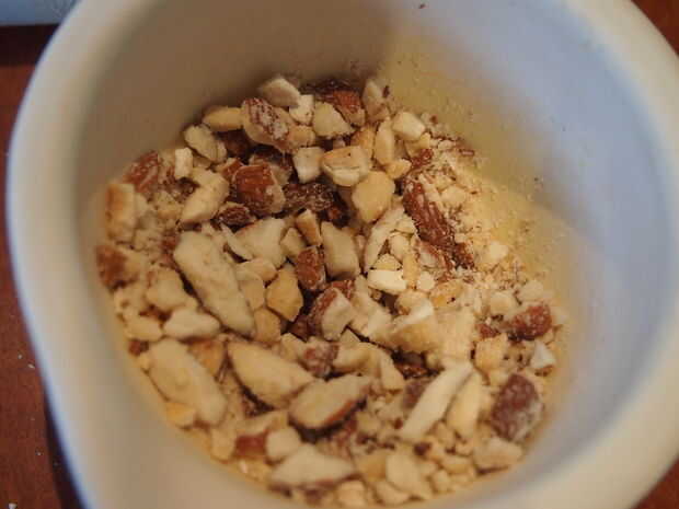 Básicamente utiliza almendras y anacardos como base, había triturado para arriba y había añadido semillas de cilantro y comino molido.