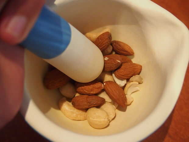 las tuercas son golpeadas junto a una textura en polvo ni como una pasta.