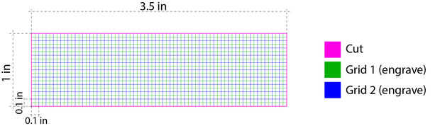 Magenta para cortes. Verde y azul distinguen las 2 redes, pero tienen el mismo nivel de potencia de grabados.
