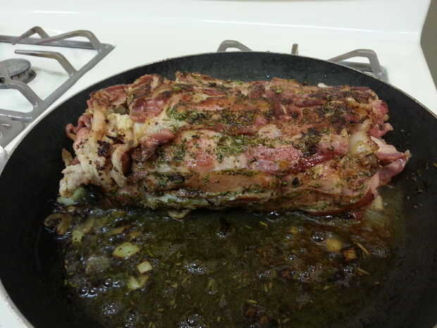 Tienes que girar la carne para que Dora por todos lados. Lo cociné unos 2-3 minutos por cada lado pero que también depende de cómo crujiente te gusta el tocino.
