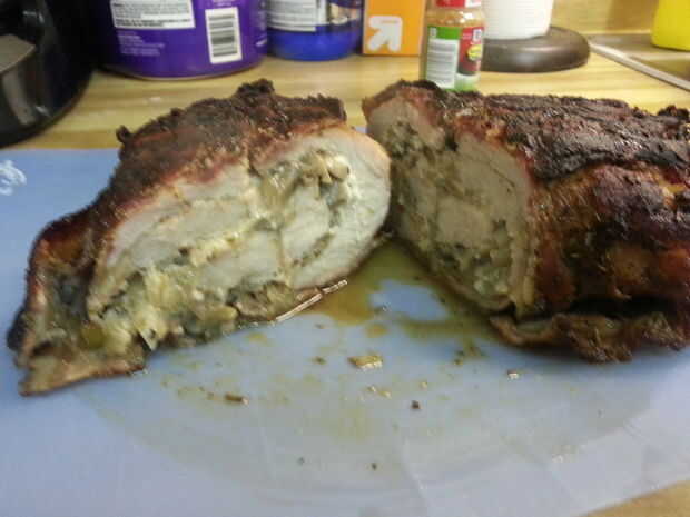 Una vez que deja reposar un poco, es hora de cortar este registro de deliciosa carne abierta. Oohhhh bondad cerdo dulce dulce.