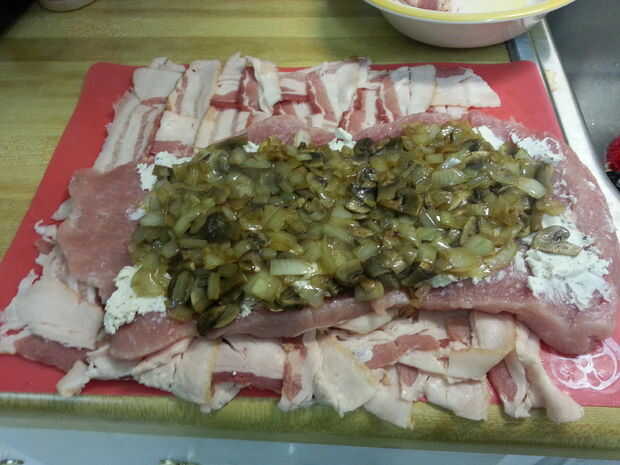 Este paso es relativamente explica por sí mismo. Aunque sugiero dejar los champiñones y las cebollas se enfríen un poco antes de poner encima el queso. Así ellos no derriten el queso antes de que esté listo para rodar para arriba.
