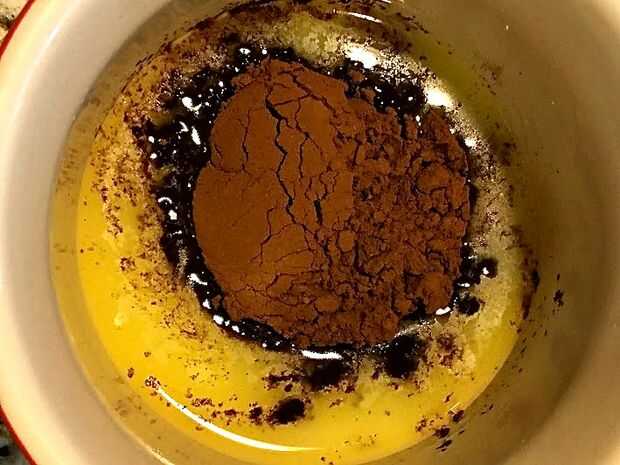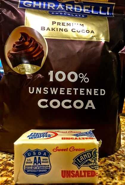 Unte con mantequilla un molde de Bundt de 12 pulgadas o dos moldes de pan de 8 1/2 por 4 1/2 pulgada. Espolvorear con harina y golpee hacia fuera exceso apartar. O (como hacen, en un tazón pequeño, mezcle 1 cucharada de cacao y 1 cucharada de mantequilla derretida en una pasta. Completamente el interior de la capa interior de pan).