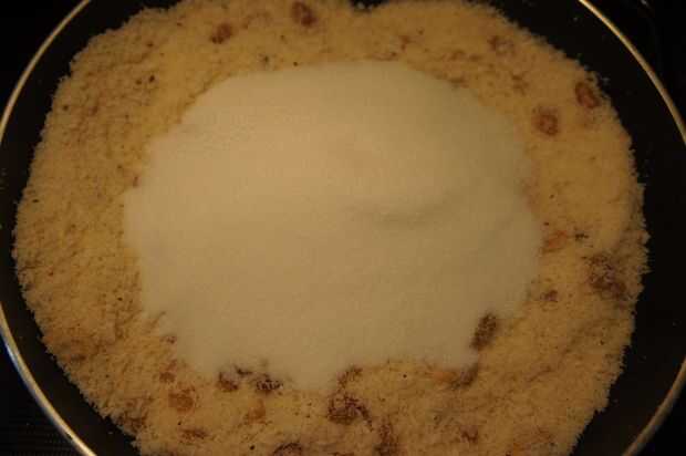4) por último, agregue el azúcar y mezclar bien. tan pronto como el azúcar se agrega apague la estufa y quite el pan de la superficie de calor para evitar que el azúcar de la fusión.