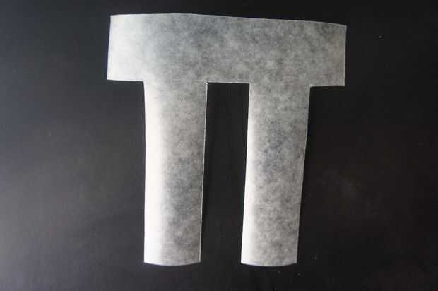 1) con papel de cera, dibujar y cortar un Pi (símbolo) como una plantilla.
