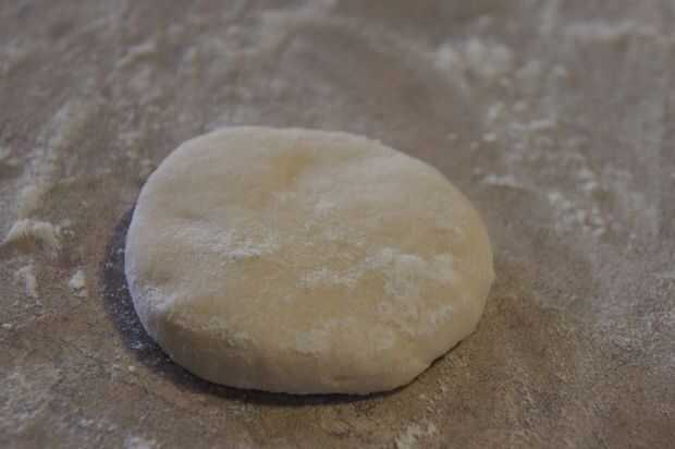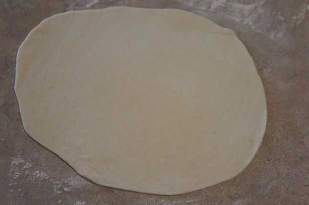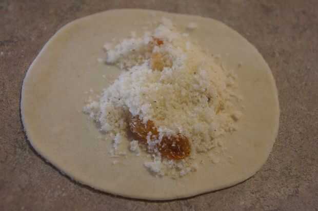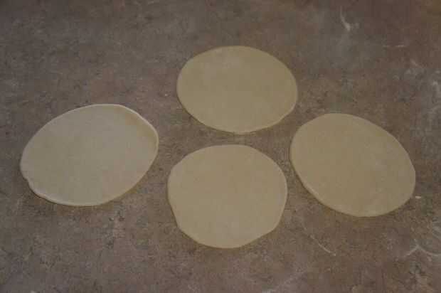 1) rodillo mediano en forma de finos círculos en la masa y la cuchara el relleno en el centro del círculo.