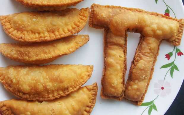 Dulce coco frito empanadas están listas para comer. También puede almacenar en un recipiente y comer más tarde.