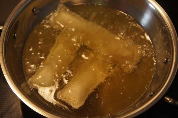 2) espolvorear harina sobre la encimera, tomar una pequeña porción de la masa y rodar lo más delgadas posible.