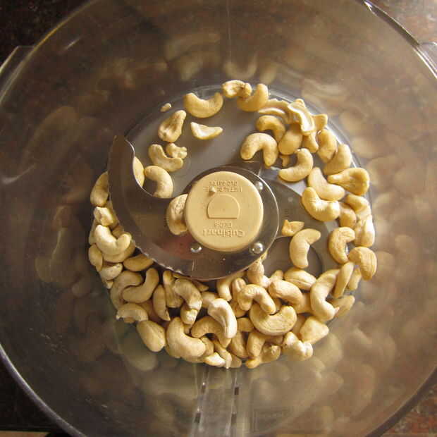 En el tazón de un procesador de alimentos agregue nueces de la India y el proceso hasta que tienes mantequilla de anacardo. Esto tomó cerca de 3-4 minutos en mi procesador de alimentos. Primero, la mezcla se verá como hecho harina y la TI se verá como migajas y luego finalmente las pepitas de Marañón comenzará a liberar sus aceites y convertir en mantequilla de anacardo.