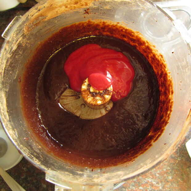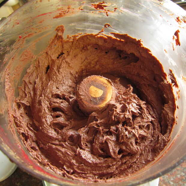Añadir aceite de coco, miel, las fechas y de vainilla y el pulso varias veces hasta que las fechas están finamente picadas. Rebañe las paredes según sea necesario. Cuando la mezcla comienza a separar añadir el cacao en polvo y pulso para combinar hasta tener una consistencia suave.