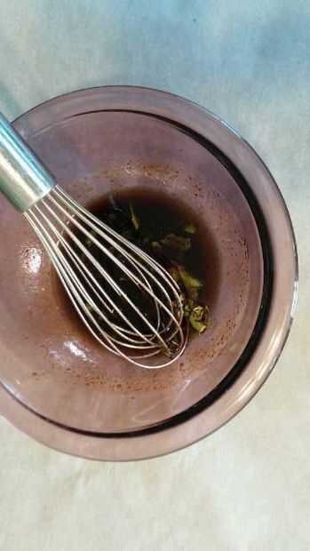 Mezclar aceite de oliva, vinagre balsámico y agave.