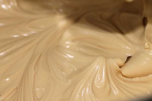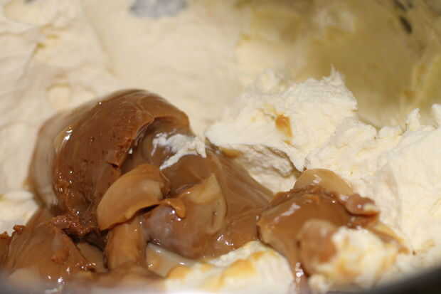 Añadir una lata de dulce de leche y mezclar hasta combinar bien. Reduzca la velocidad a baja y agregar los 3 huevos uno a la vez, batiendo después de cada adición hasta sólo combinar.