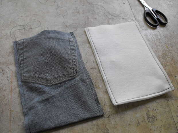 1. doblar el dril de algodón en la mitad, derecho contra derecho. Y coser los lados.