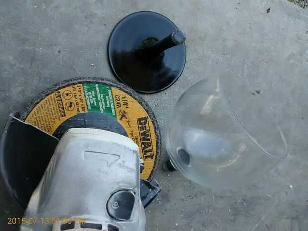 Un peso de salmuera es un vidrio o cerámica (nunca metal - metal se corroe en la salmuera) objeto que es apenas lo suficientemente pequeña como para caber dentro de la boca de tarro conservas. Me encontré con algunas copas de vino antiguo que tenía sólo el tallo del tamaño correcto. Afile con una amoladora de lado (uso anteojos de seguridad) - simplemente saltearse todo alrededor le permite ajustar el vidrio limpio. Desbarbar los bordes afilados y lave bien. (¿MENCIONÉ LAS GAFAS?) Esto irá en la parte superior sus verduras, les pesa hacia abajo para evitar flotando por encima de la salmuera.