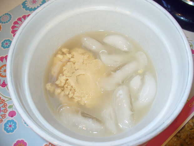 4. recoger la bola de crema de mantequilla de mocha y lugar para un par de minutos en un recipiente de agua con hielo. Usted notará que el agua se convertirá un poco lechoso como usted suavemente amasa la mantequilla. Esto ayuda a enfriar la mantequilla y elimina más del suero de leche que mejora la textura y la mantequilla sabor fresco ya.