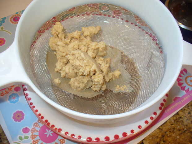 5. Coloque la bola de mantequilla crema de moka en una toalla de cocina limpia y escurra el exceso de humedad torciendo los extremos de la toalla en direcciones opuestas.