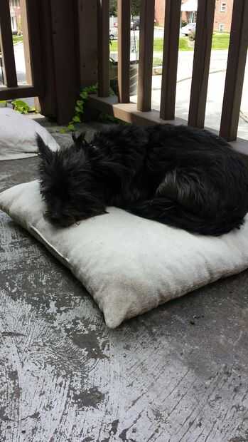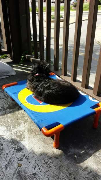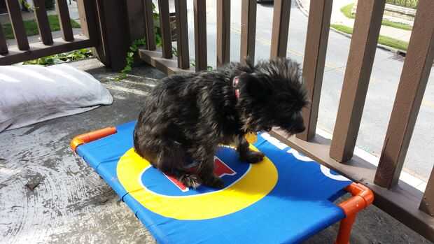 Ahora en vez de una almohada vieja mojada, Rufus tiene una dulce nueva hamaca de perro! Ahora podemos volver a ver el barrio. Rufus es un perro muy pequeño pesa una friolera de 10 libras. Esta hamaca tiene más que suficiente fuerza para retenerlo. Si tu perro es más grande (son mayoría) usted tendrá que ajustar en consecuencia. Gracias por leerme. Si usted tiene alguna pregunta por favor me dejan un comentario.