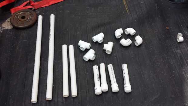 yo estaba volando un poco por el asiento de mis pantalones a través hacia fuera de todo el proceso. mi longitud inicial de las piezas de Cruz era un poco demasiado grande. Sin embargo es mucho más fácil cortar más que añadir más. Las últimas piezas fueron de 22" para los lados largos y 14" para los lados cortos. dar o tomar. Las piernas terminaban 4". Recuerda que necesitarás 4 trocitos para conectar la "T los codos. (segunda imagen) Usé 3/4" tubería y encontraron que 1 1/4" era el tamaño perfecto para las piezas pequeñas.