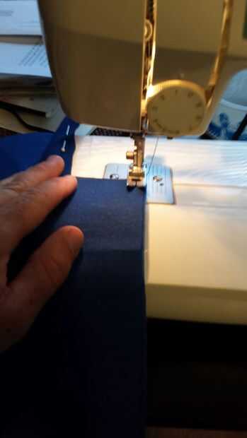 Cuando vas a coser juntos los dos lados desea que en el exterior uno frente al otro. Usted verá por qué en un minuto. Ahora a coser los bordes exteriores, dejando las piezas con muescas plegadas.