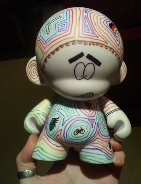 Ahora no estoy artista, no por un largo camino, pero siempre he pensado "imagen oculta" rompecabezas (como este) eran frescos y que sería una buena manera de incorporar un montón de imágenes sin relación en un diseño. Al mismo tiempo quería un objeto físico ya que era un regalo, y había visto muñecos Munny en tiendas antes. Así nació la idea!