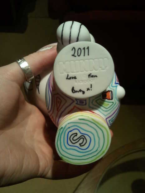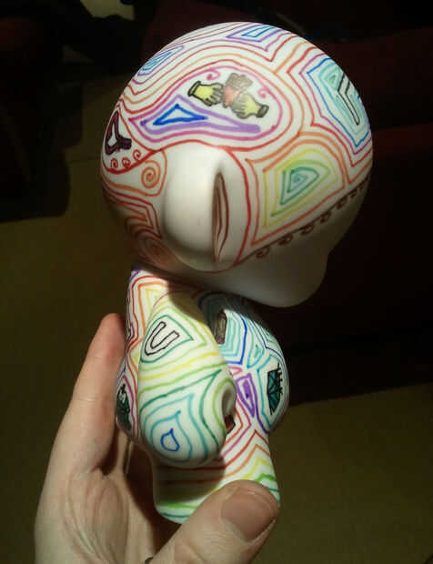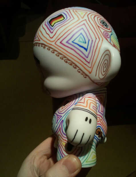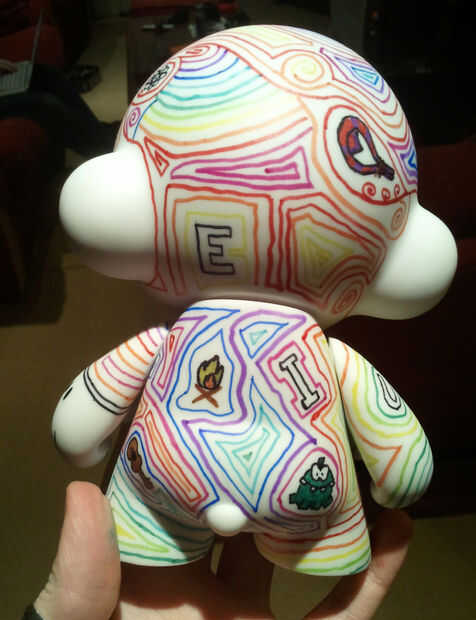 Asegúrese de que sus manos estén limpias y decorar tu Munny. Deje que mis dedos descansan en unas líneas azules, y entonces cuando sostenía la cabeza por la cara transfirió algunos tinta hasta el punto que quería ser en blanco y no podíamos deshacernos de él!