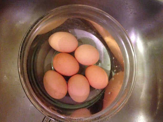 empezar con huevos.  Yo prefiero minas que recién podrá colocarse por mis mascotas pollos.  Por supuesto, puede empezar con los huevos de su tienda de abarrotes o mercado.  Yo generalmente hervir hasta por lo menos 15 huevos al hacer esto, porque alg