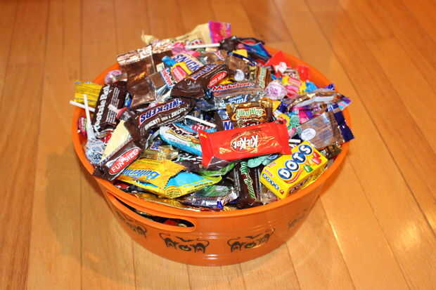 Cuando haya terminado, debe verse así, sólo un recipiente llenado de dulces. Cuando necesites algo de él, simplemente quite el caramelo de la parte superior, coge lo que necesita y luego pone el caramelo detrás. Ahora usted tiene un gran compartimiento secreto!