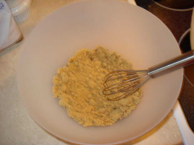 Romper los terrones, en su caso, con un batidor o un tenedor o un cortador de pastelería. Empecé con alrededor de 1 1/2 tazas de azúcar morena, pero agrego algunos más adelante por lo que es realmente 2 tazas que necesita para esta receta.