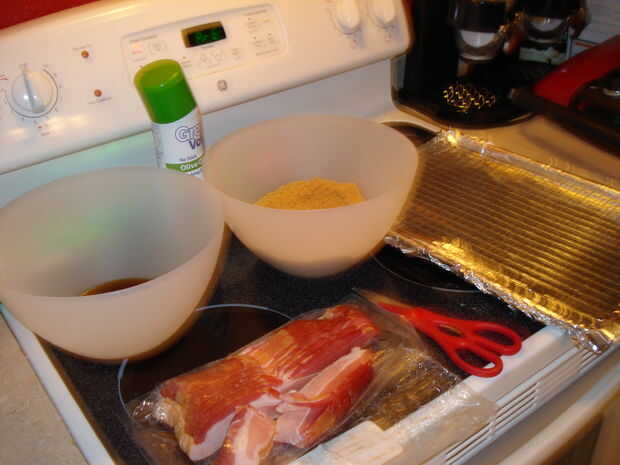 permite hacer... HAMBURGUESAS!Paso 1: ingredientes 1 lb carne de hamburguesaun huevomezcla de aderezo RanchGalletas Ritz (yo usé unos vegetales asados)bollos dequesoSalsa BBQPaso 2: Eggsplanation Romper el huevo en su propio tazón de fuente... Si ust