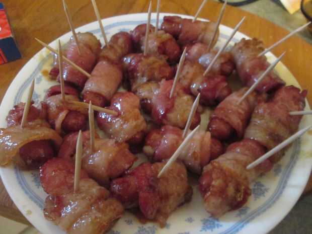 Aquí en los Estados Unidos, tenemos un producto de carne llamada "Little Smokies". Son pequeños, tamaño bocado 2 salchichas ahumadas. Nosotros nos los comemos bocadillos en ocasiones especiales. Hace unos 6 meses hice esta versión por primera vez, y mi Esposito había amado. Reducir el azúcar moreno un montón en esa primera tanda, porque mi esposo es diabético. Oh mi palabra son buenos. Los vi la primera vez en Facebook, y mi hija y les disfrutar de y me dijo acerca de ellos antes de mi primera partida. Esto es una manera de hacer un lote de dulce tocino envuelto Smokies.