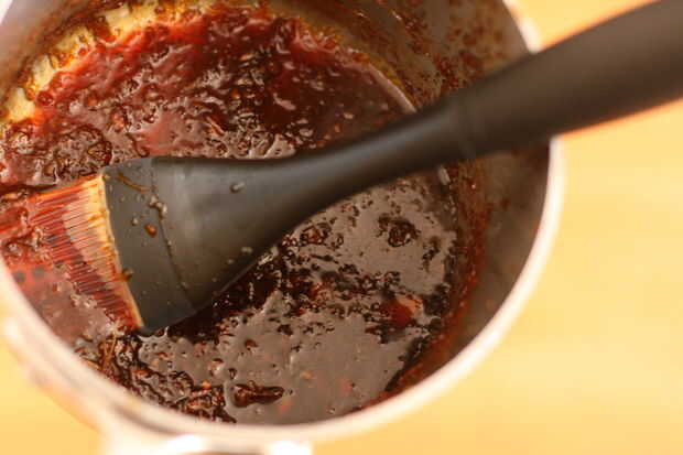 Mientras que las alas están cocinando, agregar salsa de soja, miel, vinagre, aceite de sésamo, sake, picada de ajo y jengibre picado en una cacerola mediana y poner a hervir. Baje el calor y permitir que la mezcla reduzca hasta que quede un sirope pegajoso, unos 45 minutos. Ponga a un lado.