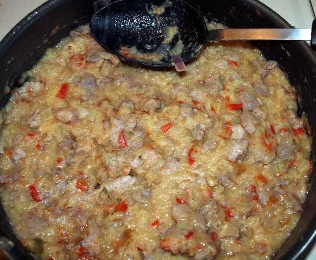 Mi foto me muestra agregar la piña a la mezcla con la carne en ella. Es como originalmente hice mía pero terminó siendo demasiado blandos. Creo que le va a gustar mejor si la mezcla de relleno tiene cierto cuerpo a él. También en mi primera receta llama para cocinar el relleno hasta que la mayoría del líquido se ha ido, pero otra vez creo que es sobrecalentamiento. Vas a cocer esta mezcla todo en la tarta para preservar los sabores, la menos sartén cocinar el mejor, en mi opinión.