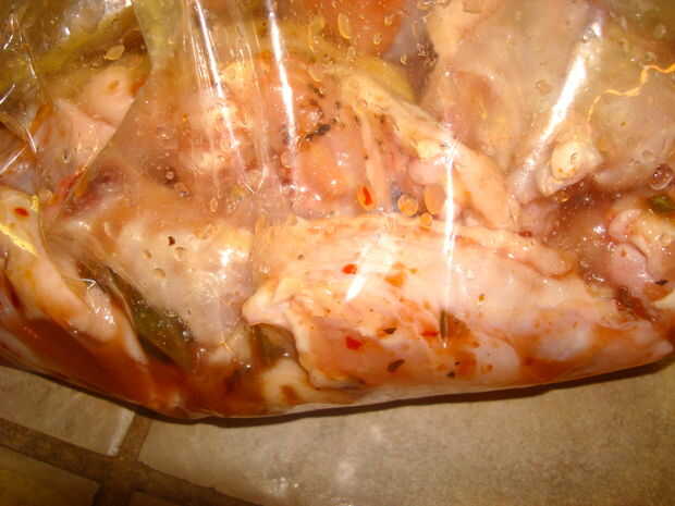Coloque el pollo en una bolsa o recipiente cubierto.