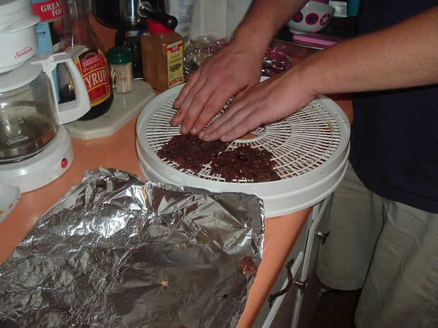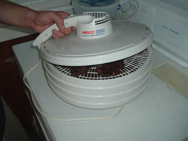 Lugar en el deshidratador de alimentos o en el horno con la puerta abierta a 200 grados durante 4-6 horas.
