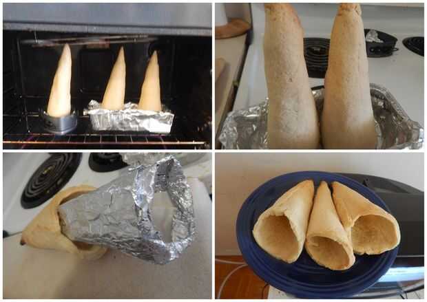 . Una vez que ha hecho los 3 conos, es tiempo para la cocción. Para mejor resultado, conos de pie deben estar parado vertical.