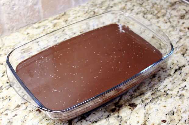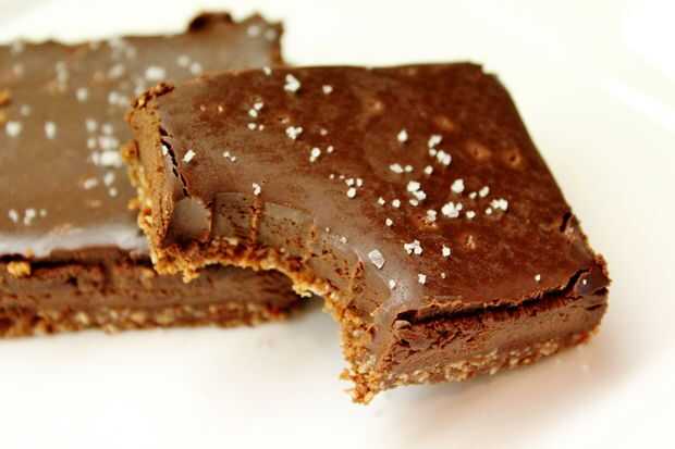6. Verter la mezcla del relleno sobre la corteza. Enfriar destapados en la nevera durante al menos 4 horas o durante la noche. Espolvorear con sal de mar antes de cortar/servir. Usted puede cortar en cuadrados pequeños, o si se siente extra lujo, puede usar cortadores de la galleta de metal lindo para hacer bares bastante en forma. Estos mantendrán bien cubierto, en la nevera durante al menos una semana. Confía en mí, que no duran mucho...