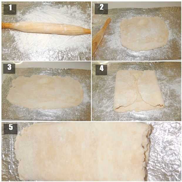 1. estirar masa sobre una superficie enharinada con un rodillo enharinado en un rectángulo.