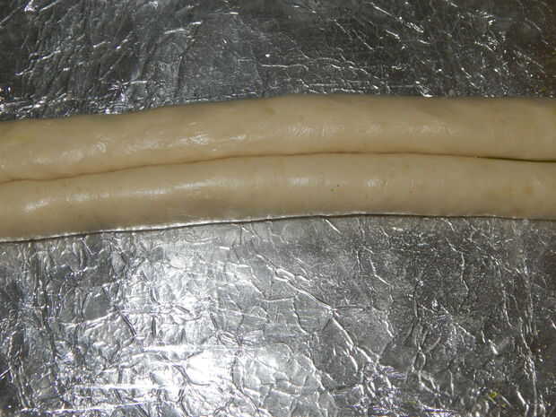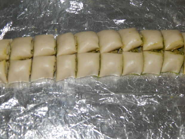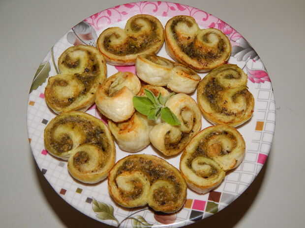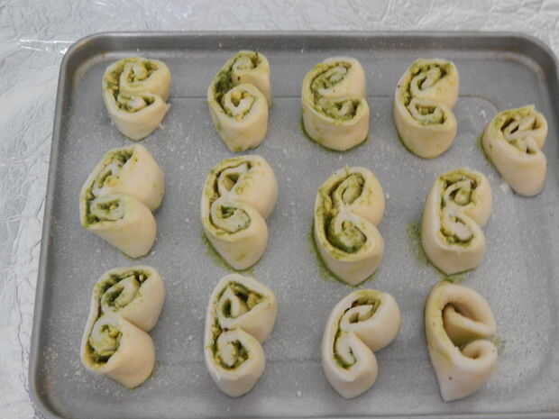 6. cortar la masa en 1 pulgada palmier y póngalos en hornear.