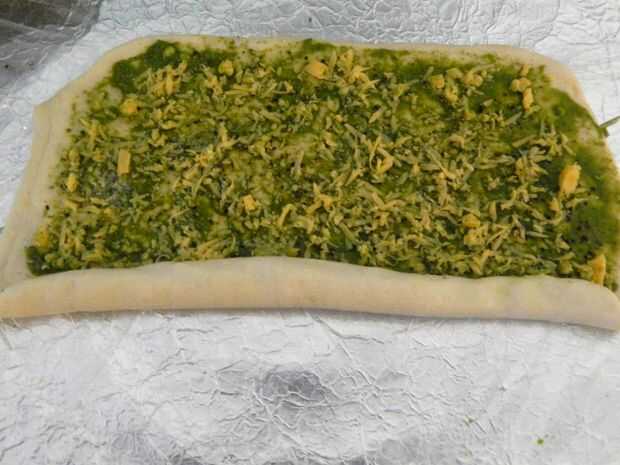3. tomar 1 masa de hojaldre, la masa del rodillo en un rectángulo grande.