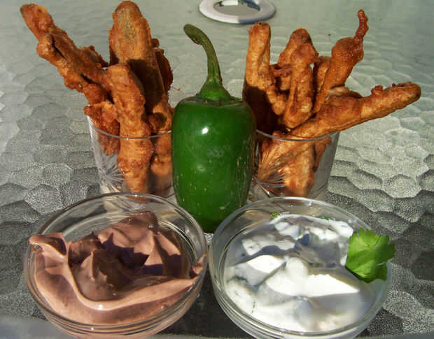 Frito, tempura empanado jalapeño spears amorosamente denominan palillos de Texas. Aunque no puede limpiar entre los dientes, sin duda quema a través de tus senos y te dejan volver para más.