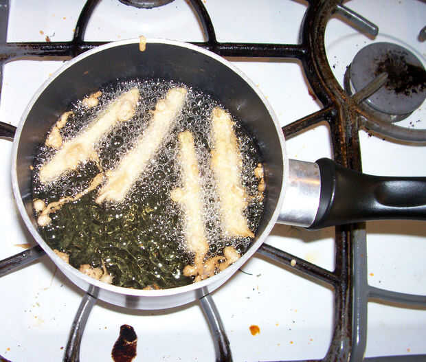 Intente quitar cualquier bit de la masa que proviene de las lanzas de su aceite para evitar que se queme y fumar.