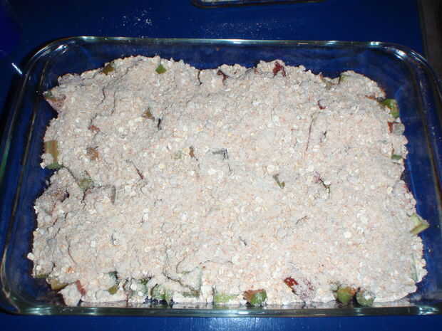 Dulce y tarta Crumble de ruibarbo (3 / 4 paso)