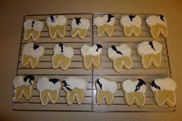 Me divertí mucho haciendo estas galletas de diente dulce y esperamos a que hace que el personal dental sonrisa cuando entregarlos mañana!