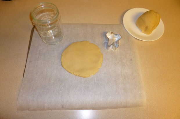 Una vez que desplegó la masa sobre papel sulfurizado y cortar los trozos, yo al horno unas galletas según las instrucciones del envase. Al percatarse de que la masa se extiende grandemente cuando, estirada hacia fuera la porción de "raíz" del diente antes de hornear el resto del lote.