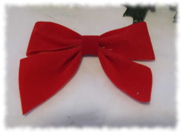 Añadir cualquier otras decoraciones necesarias para cubrir la caña entre el muérdago y flores, o para tu gusto. En este caso añadí un lacito rojo entre el muérdago y el poinsettia para cubrir el bastón de caramelo.