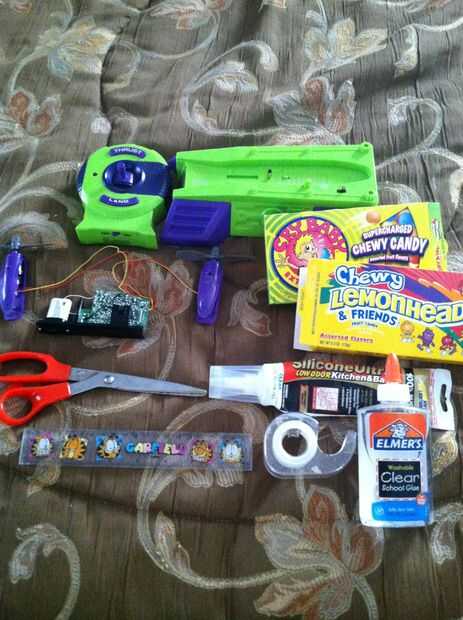 -RC helicóptero de Control remoto -RC helicóptero cargador -RC helicóptero principales componentes (placa base + hélices)-cajas de caramelo vacío - tijeras - regla {opcional} - adhesiva (pegamento, cinta, silicona, etc.) {opcional} - de la pluma / del lápiz