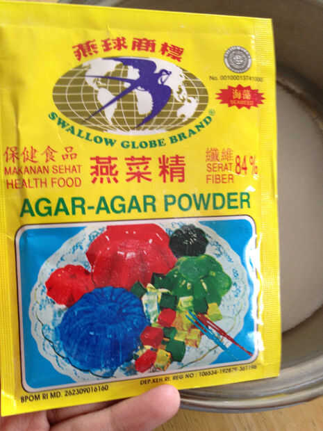 1 envolver de polvo de agar-agar (no gelatina), disponible en tiendas asiáticas o tienda de alimentos saludables, 7 g
